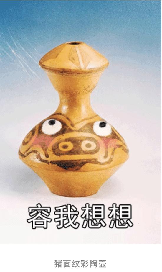 一个人头形器口彩陶瓶上,脸部伸出了一个舌头,并配文“略略略”;还有一个猪面纹彩陶壶上,眼睛转了起来,意思是“容我想想”。近日,甘肃省博物馆推出的一组文物表情包在网上走红,网友笑称,“看到动起来的文物很可爱,非常魔性,停不下来”。3月19日,博物馆相关负责人对北青报记者介绍称,表情包是馆内“让文物活起来”的具体举措之一,希望通过新颖的形式让大家了解省博,也更了解文物本身。 16个文物表情包走红 提起文物,不少网友可能想到的是博物馆内展出的严肃深沉的展品,但在近日,甘肃省博物馆推出了一批“文物表情包”,在表情包内,原本严肃的文物动了起来,并配上网络流行语,看起来十分形象。 甘肃省博物馆的微信公众号也对这组文物表情包做了介绍。据了解,做成表情包的一共有16个文物,包括从秦安县大地湾遗址出土的人头形器口彩陶瓶、西周时期的人头形銎青铜戟、仰韶文化半坡类型的猪面纹彩陶壶、唐代的三彩天王俑,和西汉时期的铜博戏俑等文物。