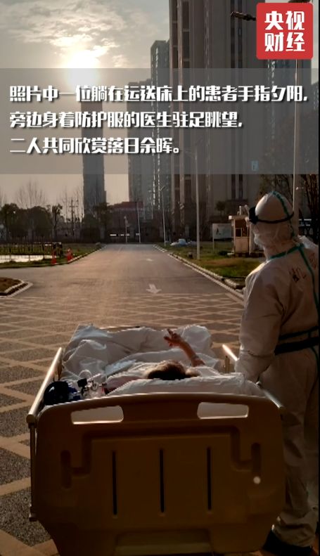 昨天晚上,一张被称为“2020年最治愈的照片”迅速走红朋友圈并温暖了无数人,照片中一位躺在轮床上的患者手指夕阳,旁边身着防护服的医生驻足眺望,二人共同欣赏落日余晖。