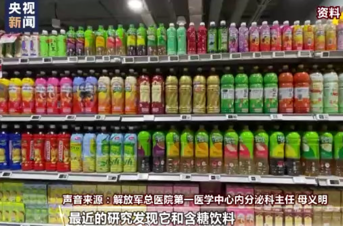 医务人员提示,不仅大量饮用含糖饮料会引起糖尿病,一些无糖食品、饮料也可能会引发健康风险。解放军总医院第一医学中心内分泌科主任 母义明:长期喝这个无糖饮料,如果它是甜的,它里边一般都加了甜味剂,最近的研究发现它和含糖饮料,在导致糖尿病发现是并没有本质的区别。相反,这些无糖的,甜的饮料,加了甜味剂的饮料,在导致糖尿病和心血管疾病方面可能比我们喝甜的含糖饮料危害会更大。