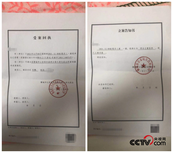 受案回执、立案告知书(受访者提供)