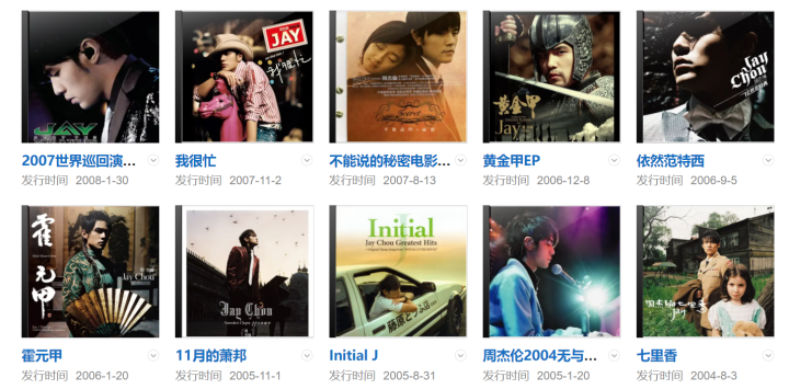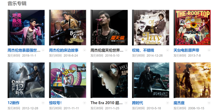 从出道到现在,周董一共发行过27张专辑(其中2张为演唱会专辑),其中《Jay》是2000年发行首张个人专辑。2001年发行的专辑《范特西》奠定其融合中西方音乐的风格,2014年发行华语乐坛首张数字音乐专辑《哎呦,不错哦》。