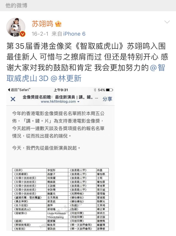 苏翊鸣后来还凭着小栓子一角,入围了第35届香港金像奖最佳新人。苏翊鸣也曾在采访中透露自己想过考中戏成为一名演员。家人们也很乐意让他往表演方面发展,毕竟演戏比滑雪稳妥得多。