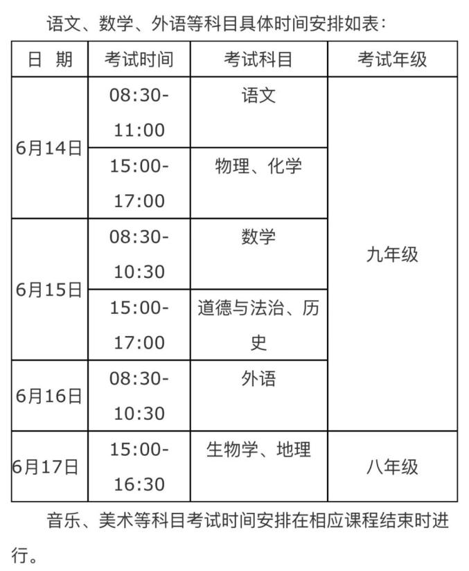 语文、数学、外语、物理、化学实行纸笔闭卷考试,语文考试允许使用正版学生字典;道德与法治、历史实行纸笔开卷考试,允许携带教科书等相关资料。生物学、地理实行纸笔闭卷考试。各学科考试均不允许使用计算器。