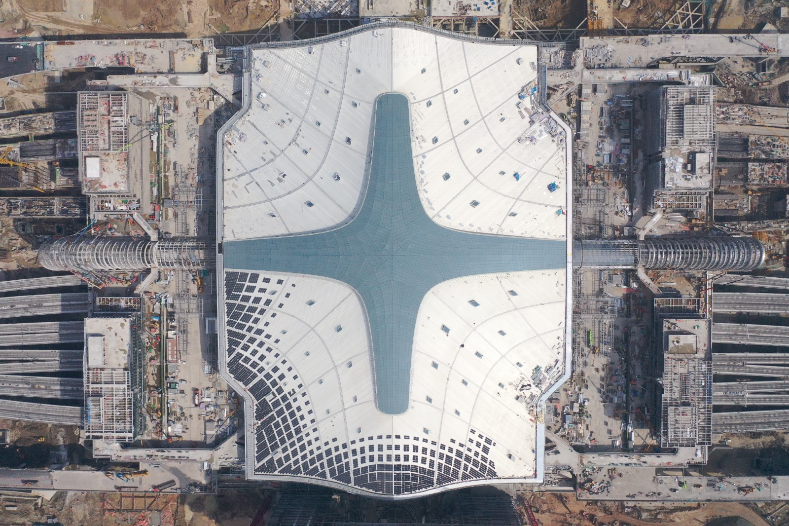 杭+新闻讯 记者从杭州亚运会重要配套工程杭州西站建设现场获悉,杭州西站站房主体屋面光伏发电项目施工正有序推进,西南象限的光伏板铺设已完成,另三个象限的光伏组件支架开始安装,预计4月下旬铺设完毕。
