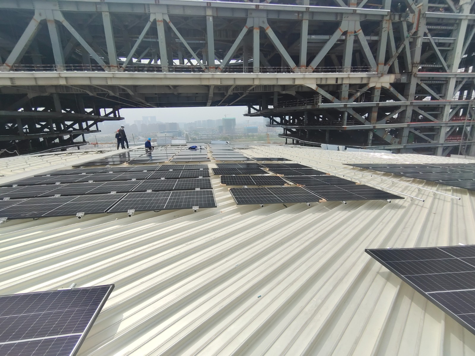 杭州西站光伏发电项目于今年2月23日正式开工建设,3月6日光伏组件材料进场,3月10日开始组件安装,目前站房屋面支架系统、光伏组件正在有序安装中。该项目计划与杭州西站站房主体同步竣工,6月下旬完成并网发电。