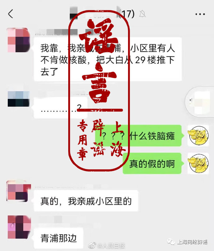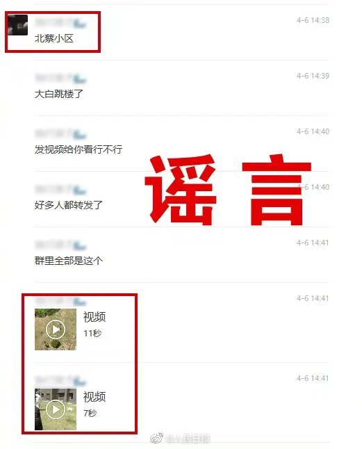 上海网络辟谣消息 6日,网传多个微信聊天记录并附同一内容视频,称青浦一“大白”从29楼被人推下身亡,又有称此视频为北蔡一“大白”跳楼。上海辟谣平台经与警方核实,当天青浦和浦东北蔡地区均无坠楼事件发生,相关信息不实。请广大网民不要随意转发未经证实的消息。