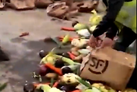 东方网·纵相视频微博消息 昨天(4月17日),一段大量蔬菜被铲入垃圾车的视频引起关注。东方网·纵相新闻记者根据视频中显示的蔬菜外包装箱联系到江苏大丰仓农业集团,综合办赵女士告诉东方网·纵相新闻,由于蔬菜运送周期长,导致蔬菜腐烂在箱子里面,已和大丰区城管局申请无害化处理,“召回都是上海的车运回来,我们这边的车是进不了上海的”。盐城市大丰区城管局办公室工作人员向记者表示确有此事。
