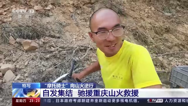 重庆山火发生后,许多驾驶摩托车的车友自发组成摩托车队,他们向着山火一路疾驰,不断运送着救援人员和物资上山,人们称他们为“摩托骑士”。