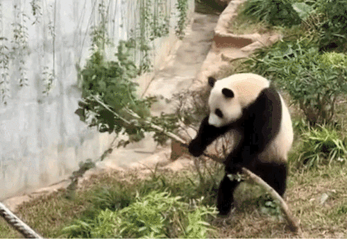令人惊异的还有国宝级大熊猫,拼命摇晃着场地的树枝,重复做“摇滚”运动,或在水中疯狂打滚,片刻不得安生。
