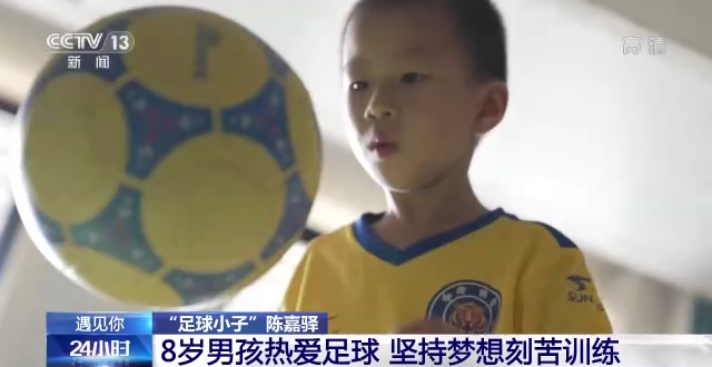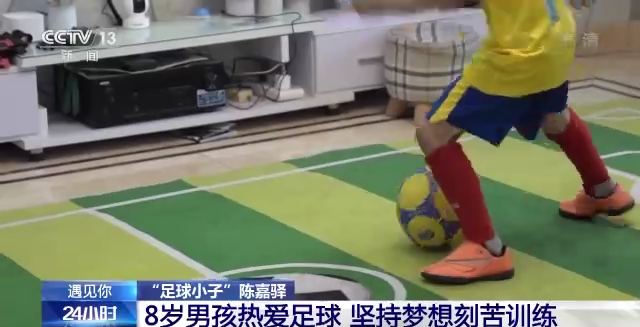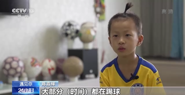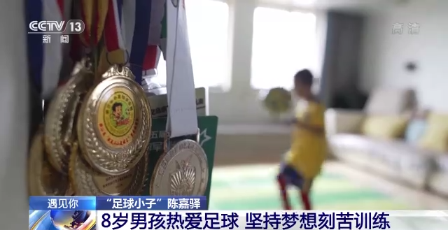 央视新闻客户端报道 小朋友也可以有大梦想。在浙江义乌,今年八岁的陈嘉驿从四岁开始就喜欢上了足球,是个十足的球迷,他也梦想着长大后能成为出色的专业球员。
