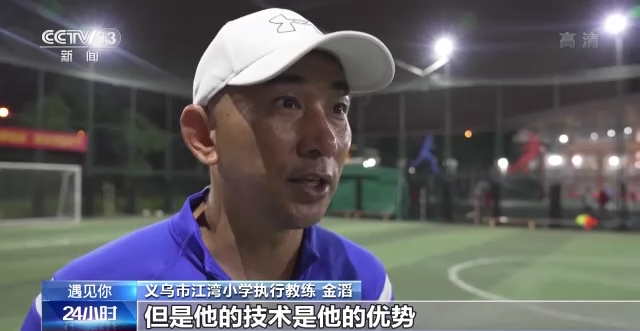 义乌市江湾小学执行教练 金滔:他的力量、身高,不是他的优势,但是他的技术是他的优势。