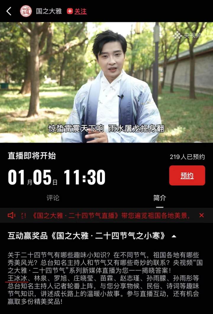 此前已有细心的网友发现,在央视频《国之大雅》系列节目中关于小寒篇和大寒篇的简介里有王冰冰的名字。