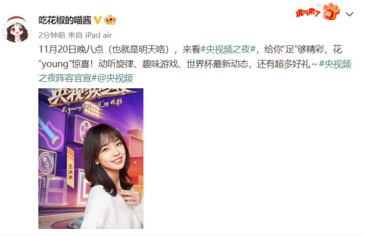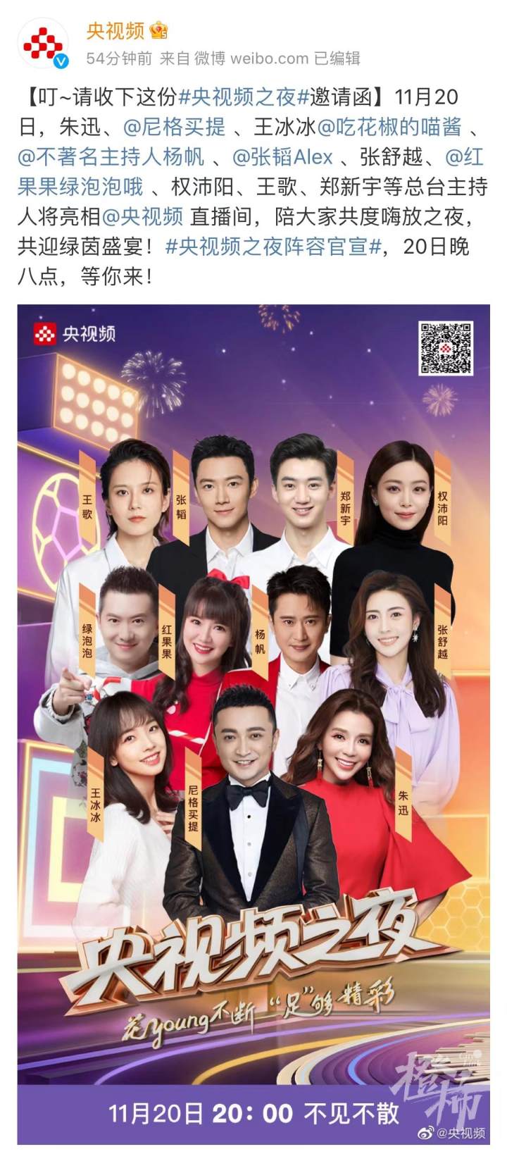 都市快报综合报道 昨天,“央视频之夜”阵容官宣,王冰冰正式回归。