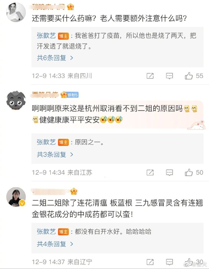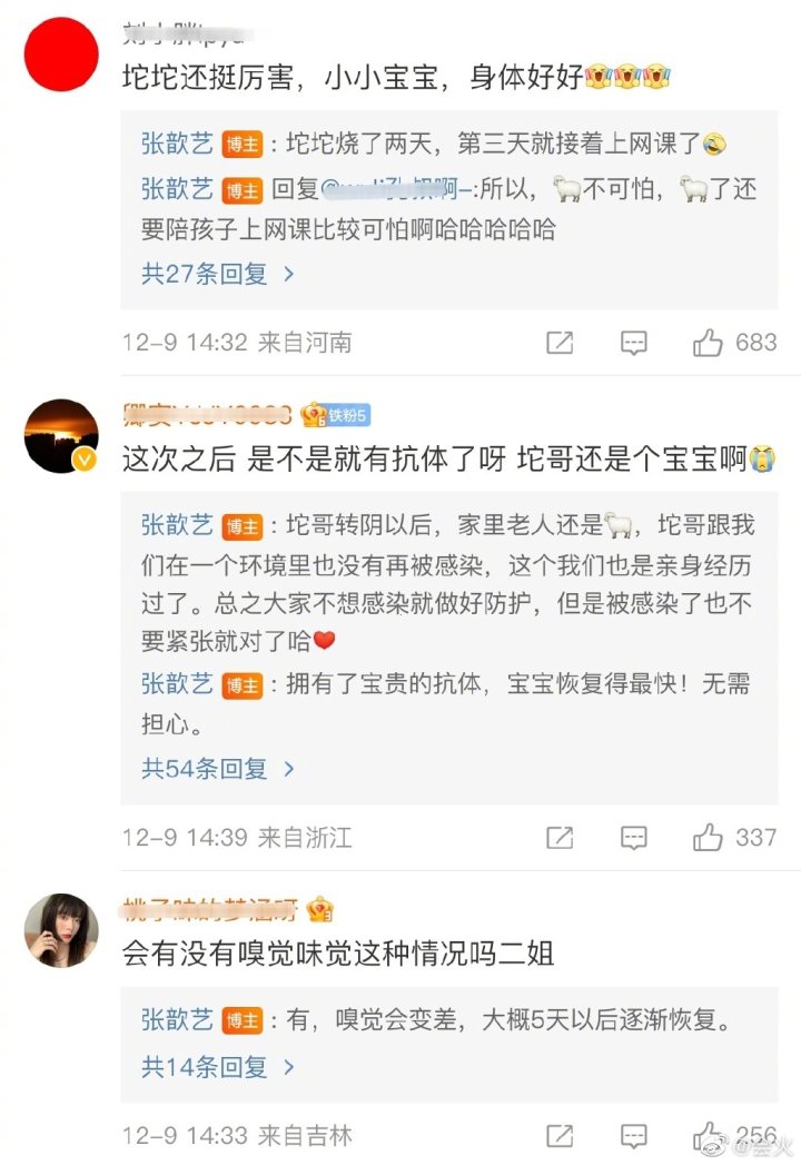同时她也有在评论中回答和分享更多的细节,包括老人和小孩的身体状况和恢复情况。