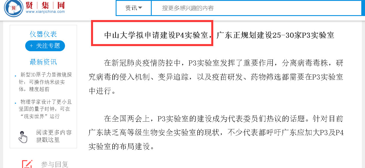但当晚一直在关注@武知不菜二代目这些情况的耿直哥,通过检索公开报道和姑苏实验室的官网,却都没有找到其实验室里有P4实验室的记录。