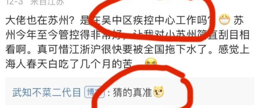 比如有网民发现,虽然此人如今宣称自己在苏州工业园区疾病防治中心工作,但此人却曾在12月初在另一则贴文中宣称自己在苏州吴中区疾控中心工作。