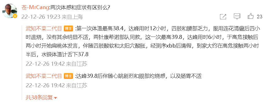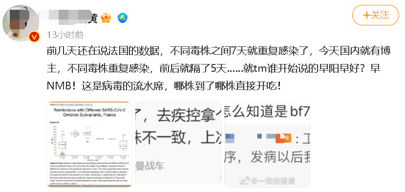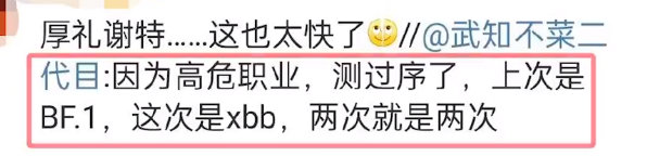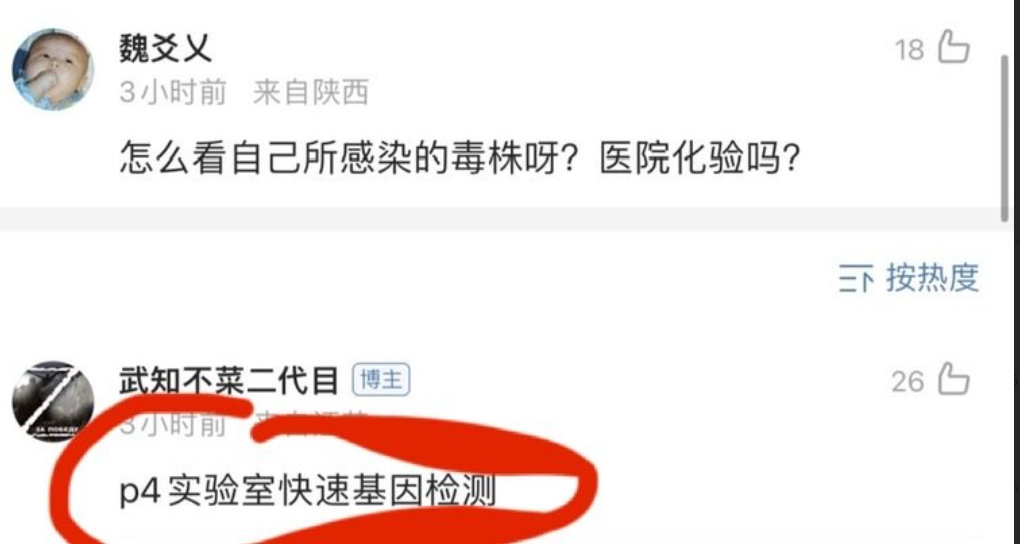 至于如何知道自己感染了两种毒株,@武知不菜二代目则宣称自己在苏州工业园区疾病防治中心(Sipcdc)工作,还称自己是在P4实验室里通过快速基因检测得知相关信息的。