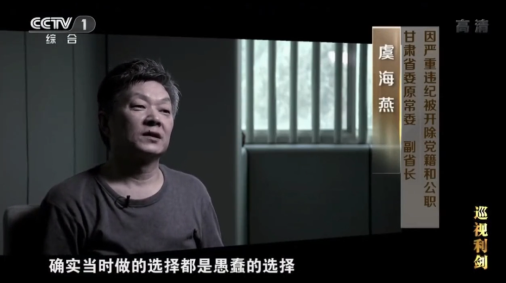 甘肃省原省委常委、副省长虞海燕在专题片中忏悔。图源:央视新闻