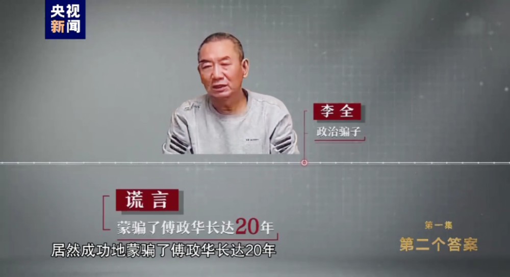 “政治骗子”李全蒙骗傅政华长达20年。图源:央视新闻
