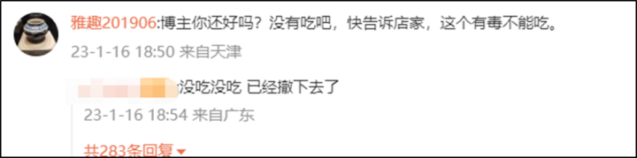 事后,发布微博的网友表示,自己并未食用这盘食物,并且让店主撤下去了。