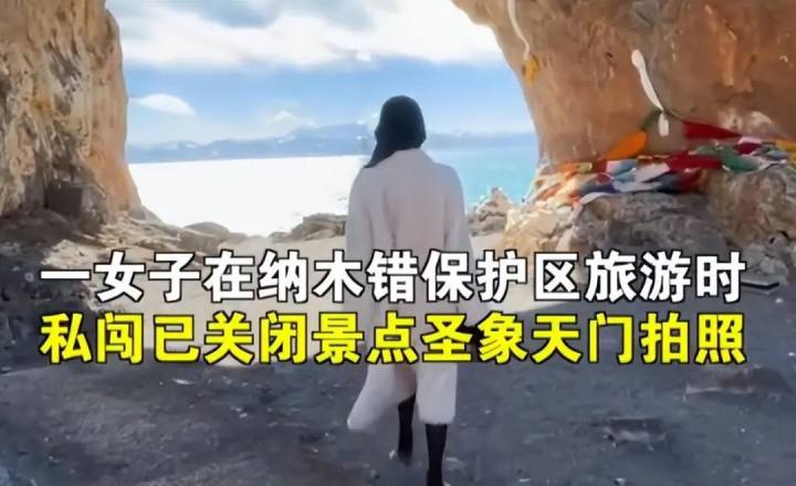 都市快报综合报道 2月1日,一女子在西藏那曲纳木错保护区旅游时,私闯已关闭景点圣象天门拍照。