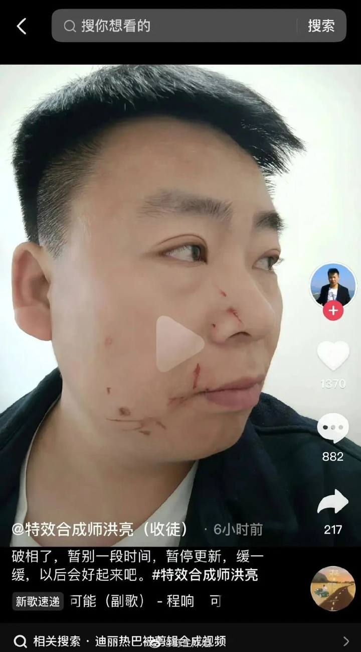 3月25日,洪某在社交平台上表示,自己的脸因为这件事被女星的粉丝抓伤,“破相”了。