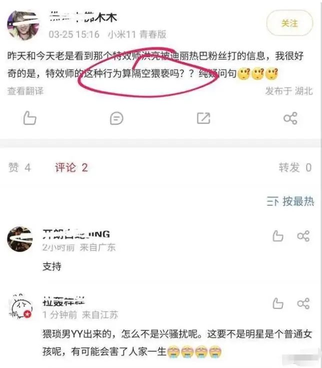 很多网友讨论的重点在洪某合成该明星的视频上,觉得洪某合成视频这事情一来是侵权了,二来也是不尊重女性。有网友直接发问:这种行为算隔空猥亵吗?