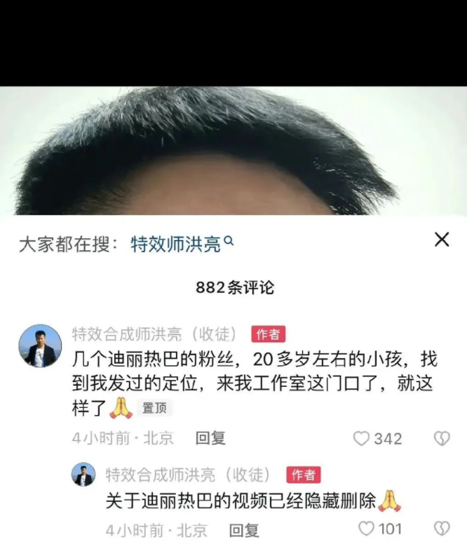 他在评论区里称:“女星粉丝,几个20多岁左右的小孩,找到我发过的定位,来我工作室门口,然后就变这样了。”
