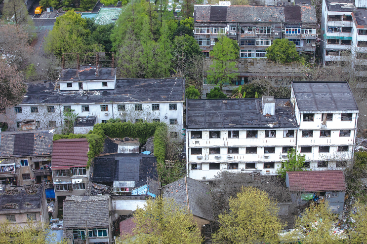 废墟周围没有一个人,突然,鸟叫声从旧楼上空划过,重重的关窗声从眼前的四楼传来,抬眼看,一个人影闪过。