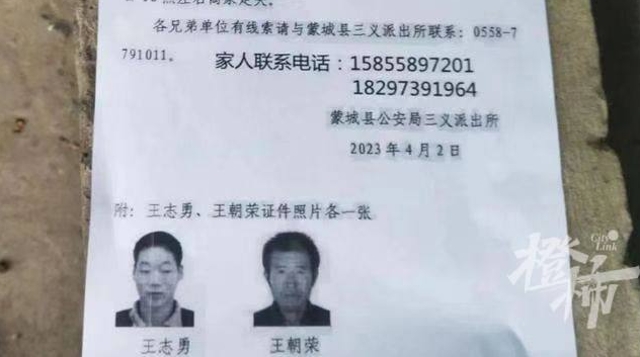 橙柿互动记者联系到寻人启事上留的家属电话,他叫王国利,失联者是他的父亲和大儿子,大儿子因为智力有问题,不能独立生活,一直呆在家里身边,平时由爷爷奶奶照顾。