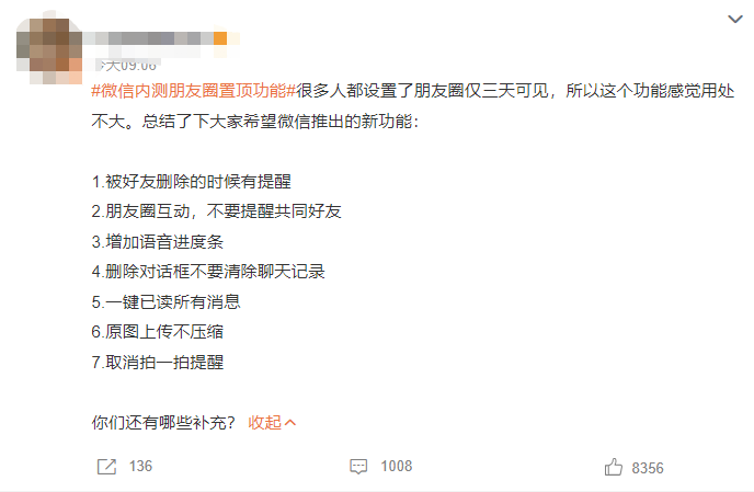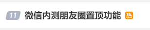 都市快报讯 今天一大早,#微信内测朋友圈置顶功能#,冲上了微博热搜。