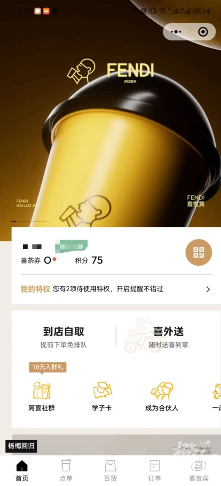 11点30分,我终于喝上了喜茶和Fendi的联名款新品,这个时候很多喜茶门店的联名款产品都已经售罄了。