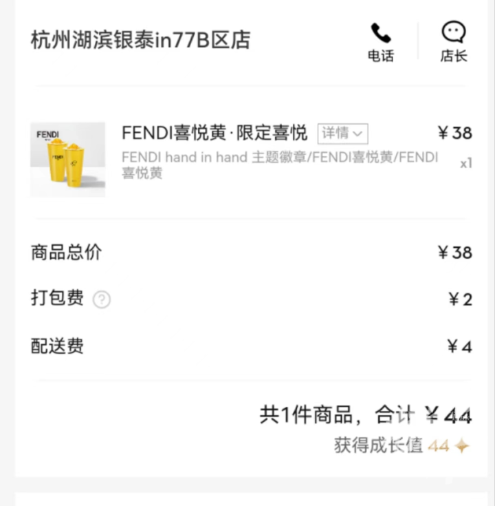 为什么不选择到店自取呢,因为那会小程序点到店自取的时候依然会出现奔溃情况,担心买不到的我只能选择了加了配送费选择喜外送,我还特地打电话问了店员,确定外卖也送周边,不过到店自取确实更便宜,两个人A一下,相当于19元就能入手Fendi。