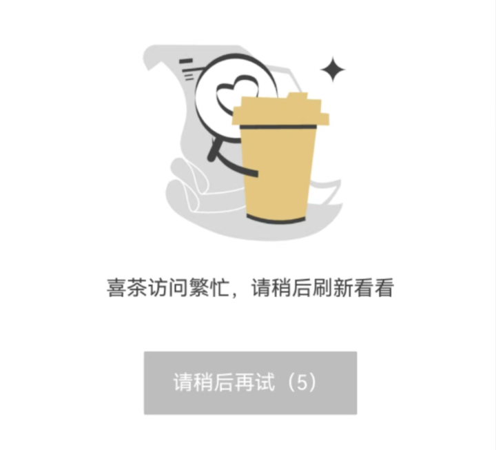在5月16日11点左右,我发现喜茶的小程序悄咪咪的上新了。但是这个上新就持续了一会,又下线了。