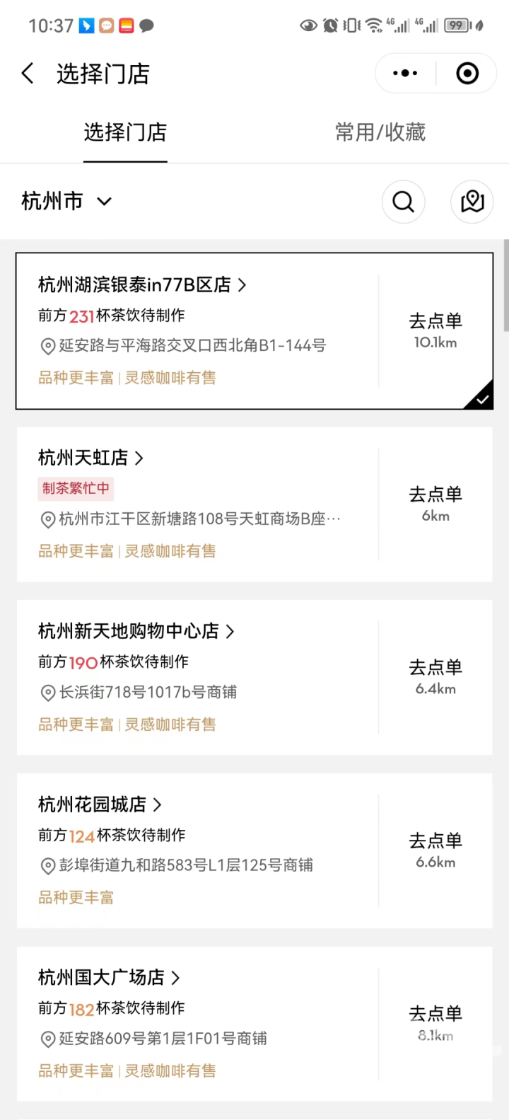 过了一会小程序正常之后我更加觉得自己是明智的,因为小程序上显示已经有多家门店繁忙,前面都是100多/200多杯的单量。