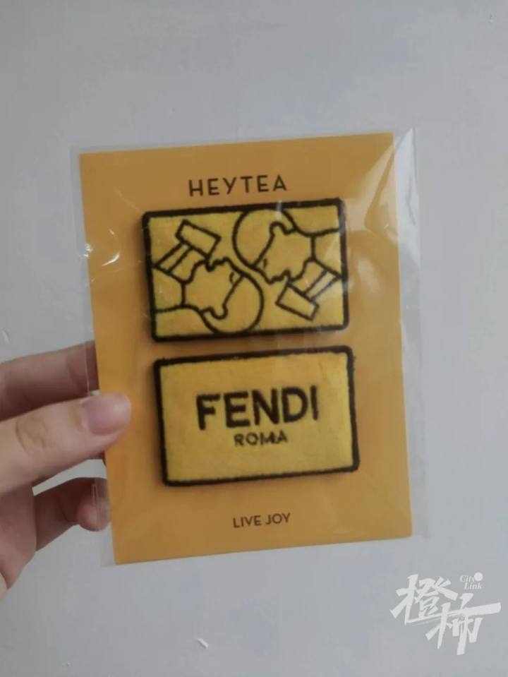 还有附赠的周边——Fendi徽章,一个包装里有两个徽章,一个喜茶的,一个Fendi的,颜值超高,平时用来别在包包上,衣服上都好看,这也让我拥有了人生中的第一个“高奢”。
