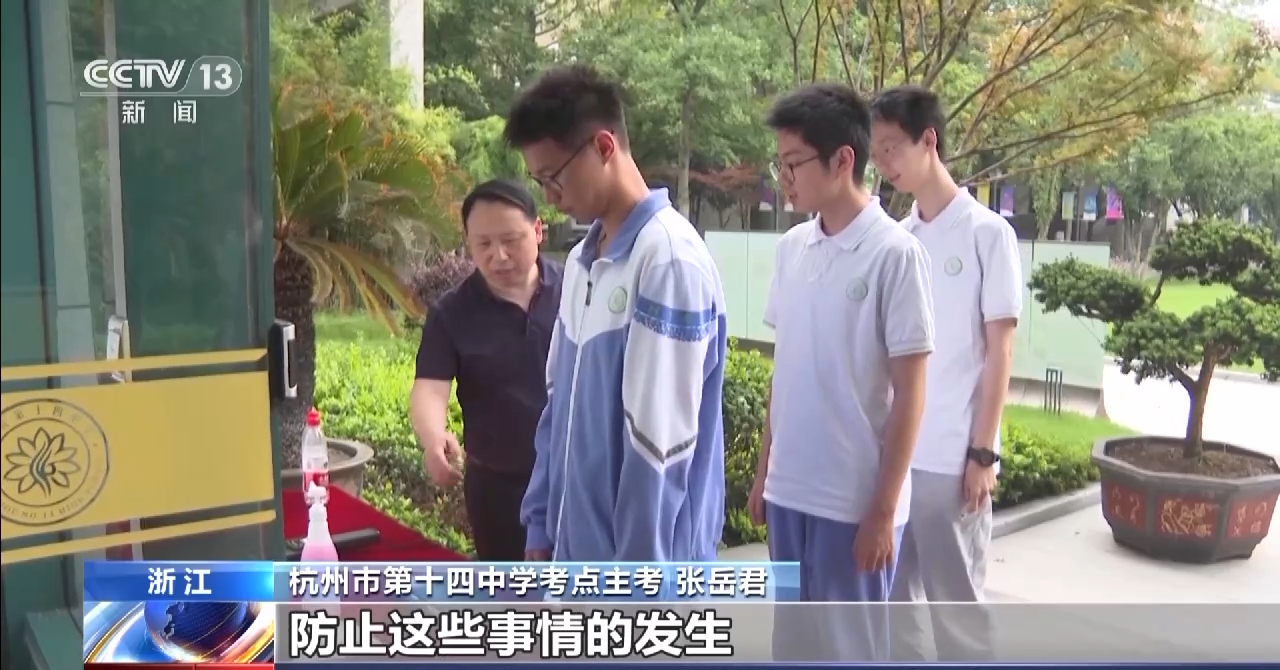 杭州市第十四中学考点主考 张岳君:两次安检的目的就是保护孩子,因为有的孩子可能一不小心把手机带入考场,忘掉了,或者把电子产品带入考场,通过两次安检后,防止这些事情发生。