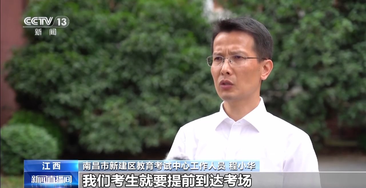 南昌市新建区教育考试中心工作人员 程小华:面对新的入场要求,我们考生就要提前到达考场,严格做到不携带手机、智能手表、手环等,建议不穿戴有金属物品的衣服,不佩戴含有金属的手镯、项链、发夹等配饰物品,以免反复安检,影响正常入场考试。