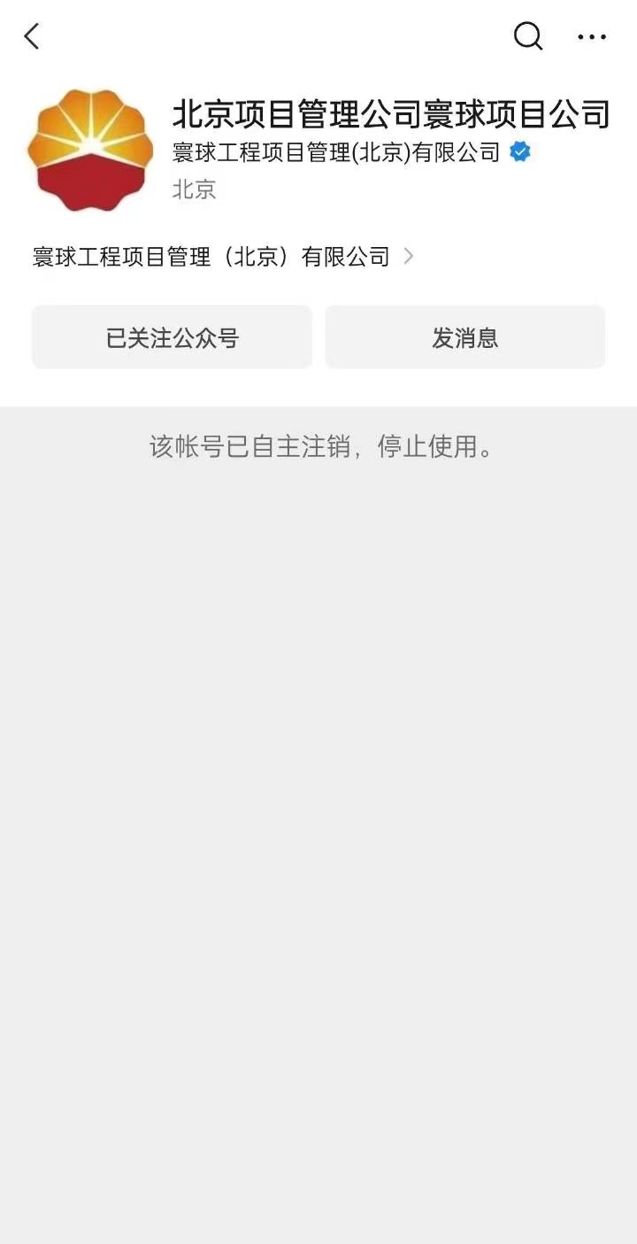 橙柿互动记者搜索相关公司官方微信公众号,发现账号已被注销。