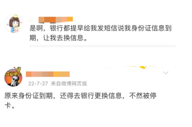 有网友说:“我的银行卡因为身份证过期被限制使用了,现在卡只收不付,一毛钱都花不出去。”她表示无奈,提醒大家身份证过期要及时更换。