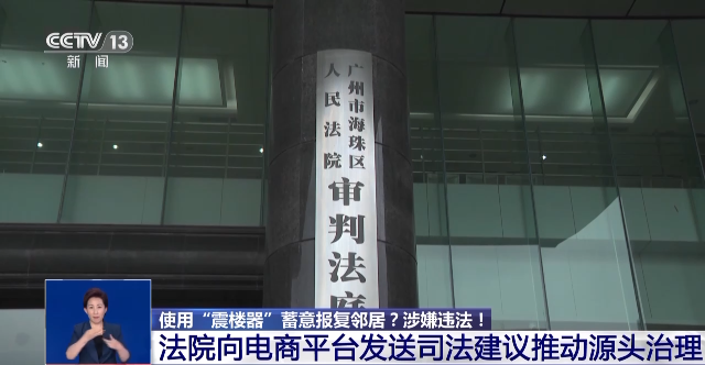 今年4月,广州市海珠区人民法院向某电商平台发出司法建议书,建议指出,对于出售以非法制造噪声为目的的“震楼器”等设备的网络店铺采取清理、警示、下架、关停等措施;对于有日常用途的蓝牙共振音箱等隐性“震楼器”,应加强对网络店铺经营活动的规范、引导;对于拒不改正的网络店铺,采取清理、警示、下架、关停等措施。