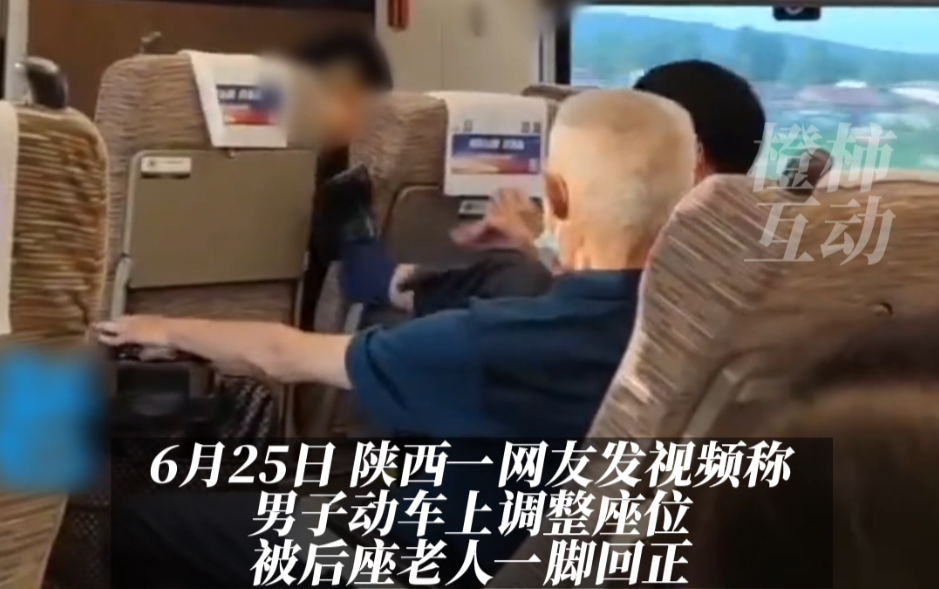 橙柿互动报道 6月25日,陕西一网友发视频曝光:高铁上,男子因把座椅放倒遭到后座大爷不满。大爷嫌弃男子将座椅放倒影响乘坐体验,双方发生激烈争执。最终,在乘务人员和大妈的劝阻下才平息了这场风波。