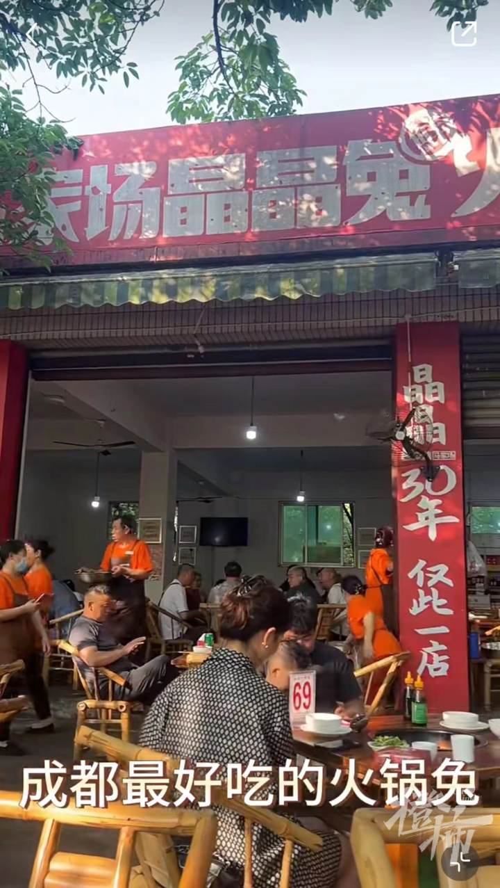 社交媒体显示,“晶晶兔火锅”是成都知名网红店,在成都有四家分店,不少网友表示常年排队,很多人专程去打卡。
