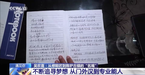 为了做好讲解,吴欢喜如饥似渴地阅读大量专业书籍,他至今还保存着三个笔记本,里面记录着他的学习笔记,以及摘抄的十多个版本的讲解词。在不同的季节、不同的天气,吴欢喜对古镇的讲解词都有所不同。