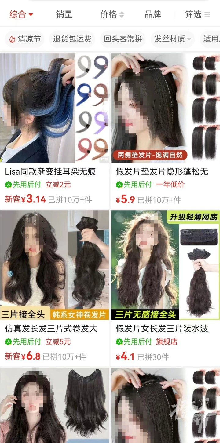 如果觉得头发不够茂密,可以选择假发片,从刘海到颅顶,直发卷发长发短发,各种颜色各种款式都能选。