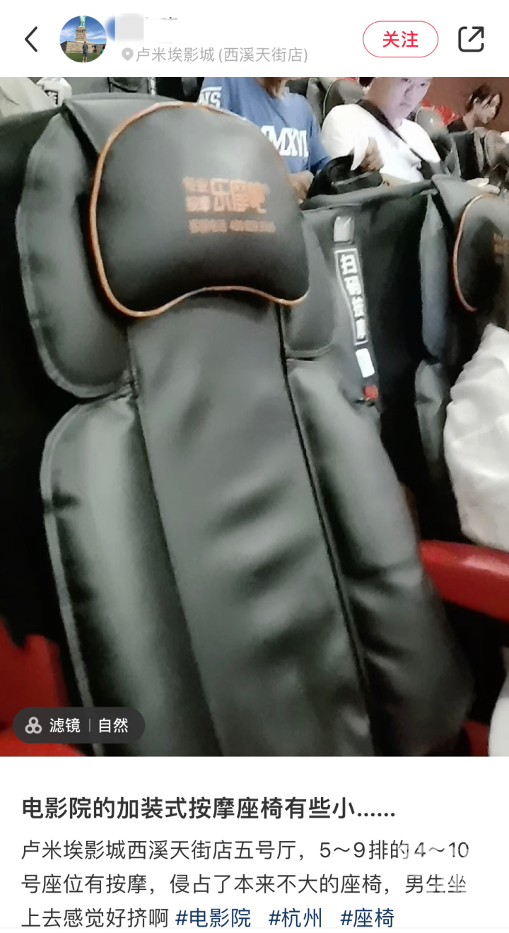 最引起共鸣的吐槽是:“中间观影区的按摩椅太难受了!”