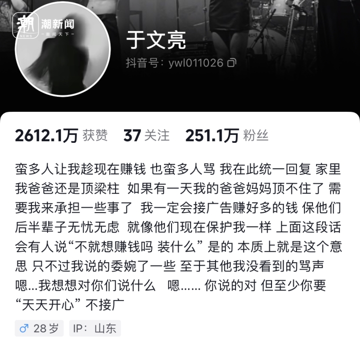 这种“自由风”的视频引发了很多网友的共鸣和喜爱,也被不少人质疑“这有什么好发的竟然还火了”“一看就是要卖货了”……而在最新更新的自我介绍中,于文亮回应称“暂不接广”。喜欢者称之“简单真实创造百万奇迹”,质疑者称“资本团队加持强推之耻”。面对暴增的粉丝量和铺天盖地的评论,“普通人”于文亮在想些什么?