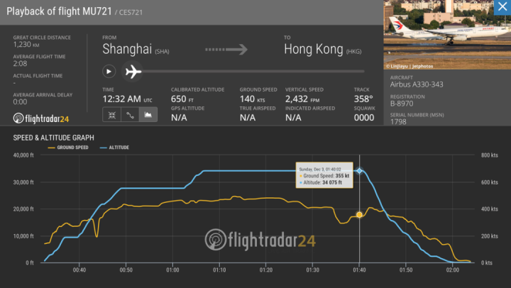 东航官网显示,该航班为FM3013次航班,东航MU721实际承运,由上海虹桥飞往中国香港。