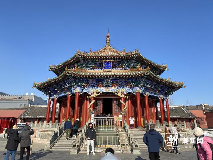 沈阳故宫是中国仅存的两大皇家宫殿建筑群之一,也是世界文化遗产。图为游客在沈阳故宫大政殿游览参观。 记者 陈黎明 摄