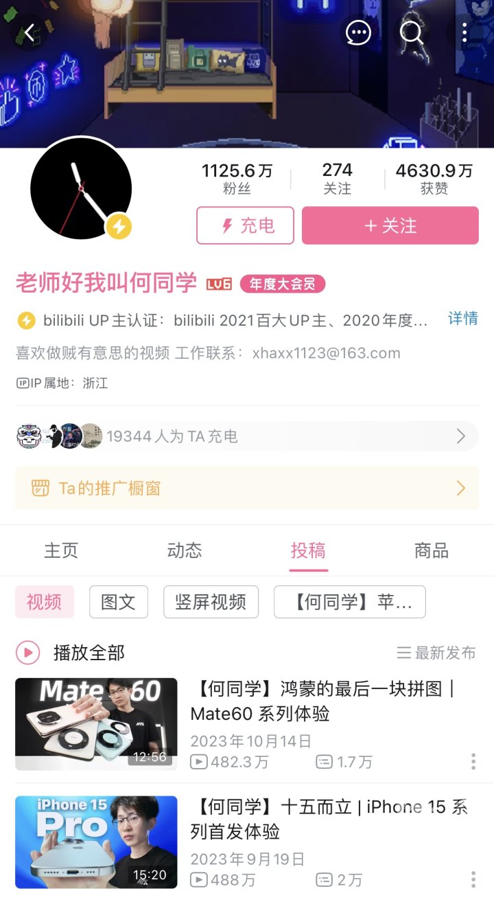 很多人认识何同学是在2019年,5G对普通人来说还是一个模糊的概念。当时还在北京邮电大学读大二的何同学,利用校园5G网环境自制了“5G到底有多快”的科普视频,让很多人直观地见证了一项新技术的诞生。目前,这个视频在B站上的播放量超过2500万次,累计播放超过1亿次。